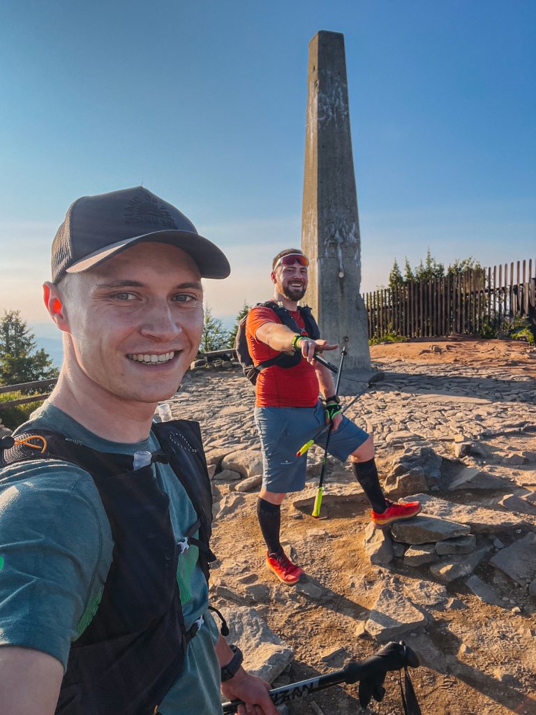 Naštěstí to byl poslední úsek. Na vrchol jsme dorazili kolem půl osmé ráno. Poslední razítko, cílová občerstvovačka – zelňačka, čaj. Únava šla na chvíli stranou a vystřídal ji zvláštní mix vyčerpání, radosti a klidu. Přešli jsme 54 kilometrů během jediné noci.