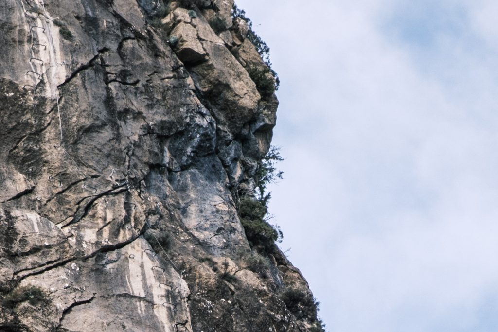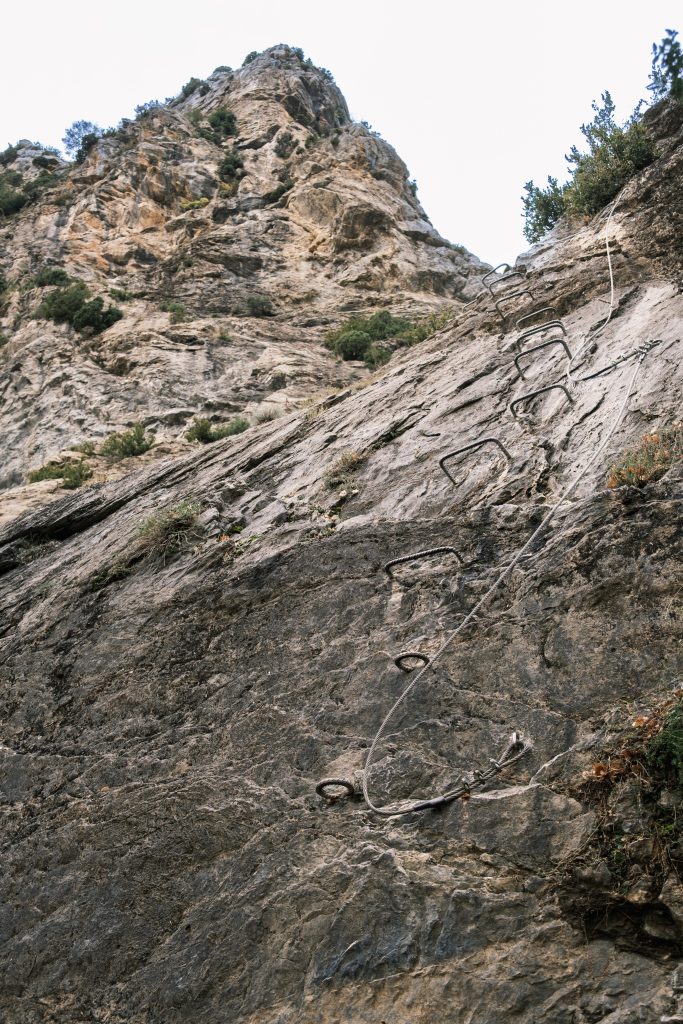 K ferratě neexistuje žádné oficiální mapa,, ale není to problém. Obtížnost je hodnocená jako C/D – středně těžká až těžší, s několika krátkými převisech. Ferrata je dobře odjištěná a v exponovaných úsecích jsou umístěny i štandy, takže si můžeš partnera klidně odjišťovat.