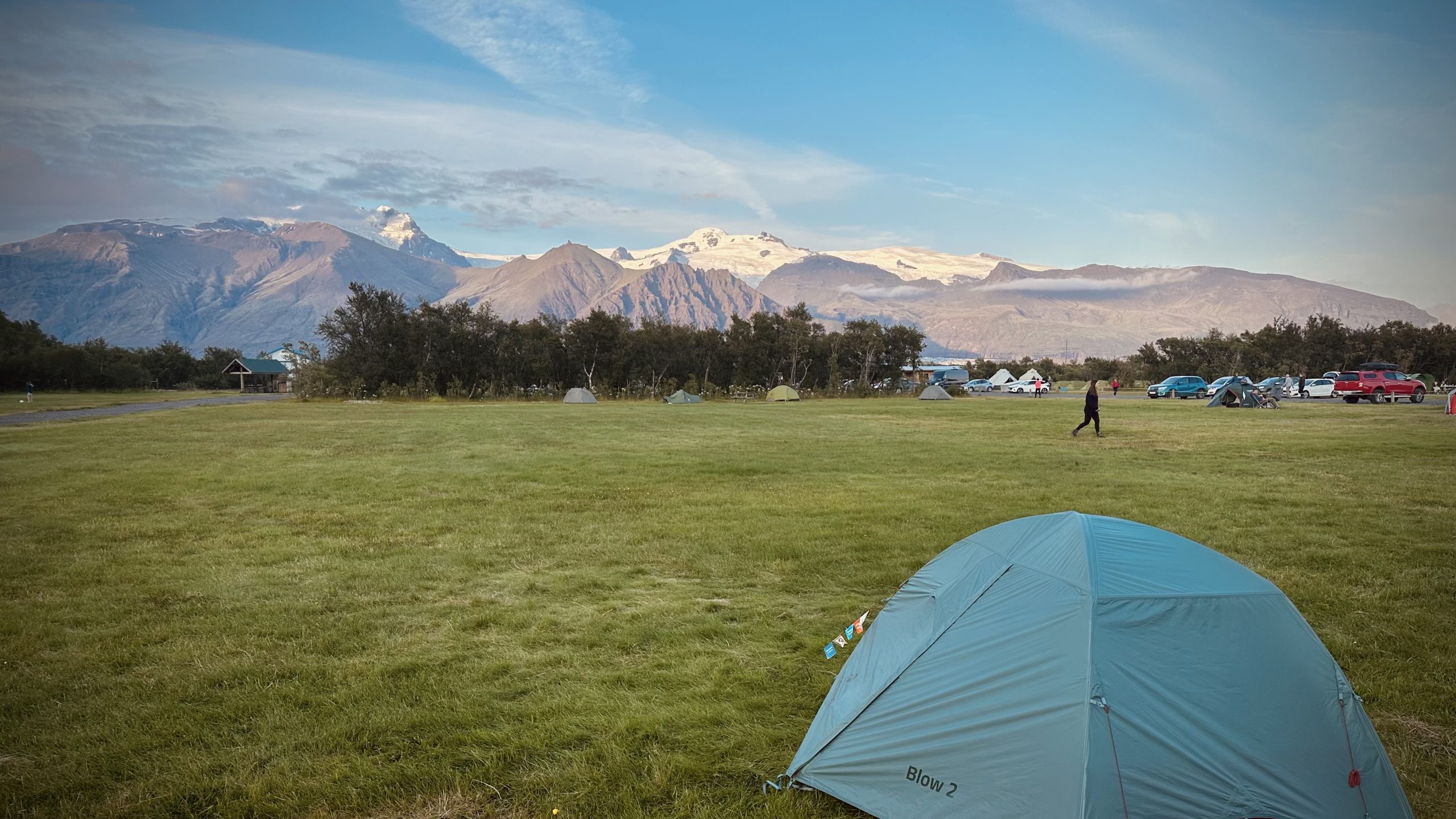 Trasa začínala hned za naším stanem v kempu Skaftafell – zpevněným chodníkem. Ty jsou tu ostatně skoro kolem celého kempu. Naše trasa naštěstí po sto metrech uhnula bokem a my se pustili klasickým, téměř vysoko-tatranským „chodníčkem“. Jen jsme kosodřevinu zaměnili za zakrslé břízky. Po asi hodině chůze jsme došli k výhledu na ledovec, který se plazil údolím. Nějaký šibal sem dokonce nainstaloval…