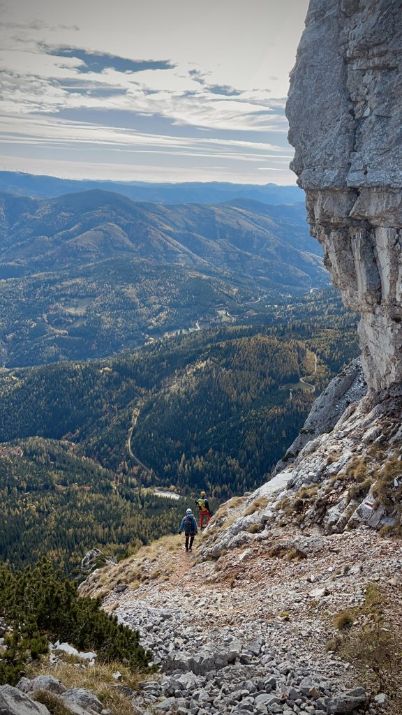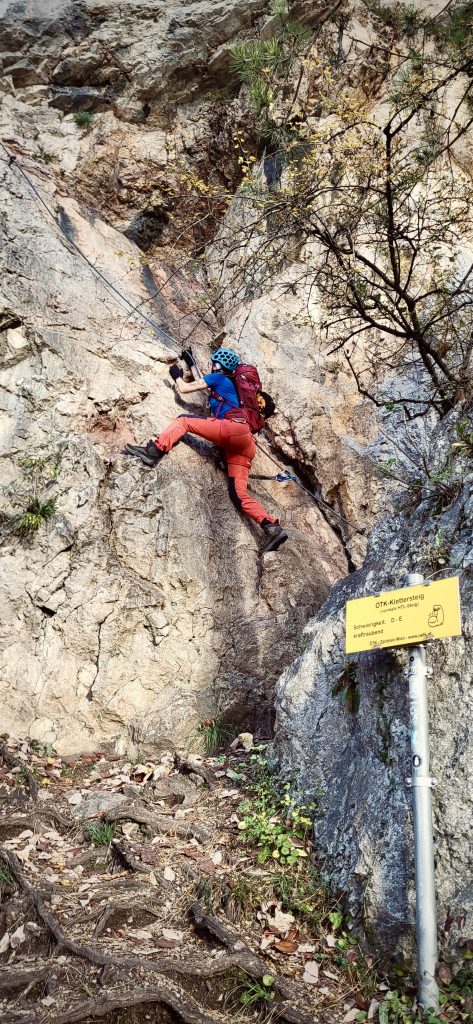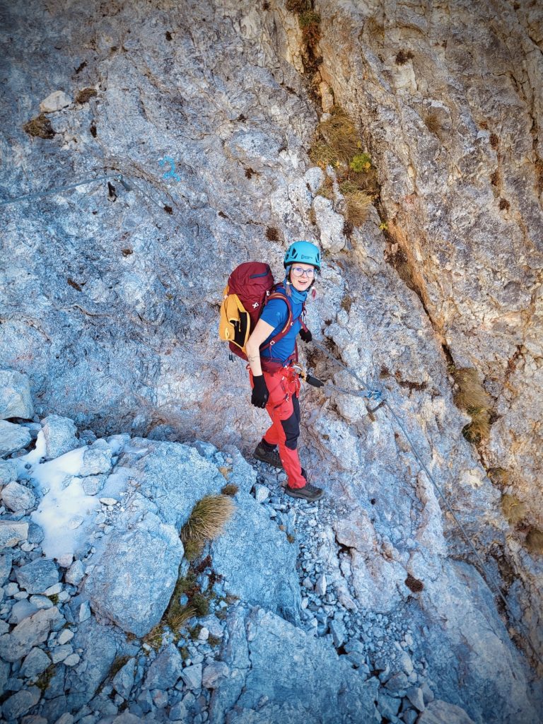 25. 10. jsme s Kubíkem a jeho tátou vylezli na Preiner Wand v pohoří Rax Alpe, „déčkovou“ ferratou Hans von Haidsteig. Jde o moc pěknou trasu s krásnými výhledy. Není fyzicky náročná a nám dohromady celý výlet s nástupem, lezením i cestou k autu trval asi pět hodin. Na nástupním místě bylo docela vtipné, že jsem z „ferraťáku“ ještě odtrhávala visačku, protože byl úplně nový. 😀
