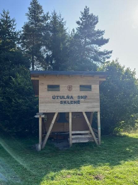 Cílovou destinací byla letos nově postavená Útulňa SNP Sklené. Byla nádherná – v patře místo pro zhruba pět lidí, ale my jsme se rozhodli rozložit karimatky na lavičkách s výhledem na louku. Největším překvapením byl fotovoltaický panel, takže jsme si mohli dobít veškerou elektroniku do plna.