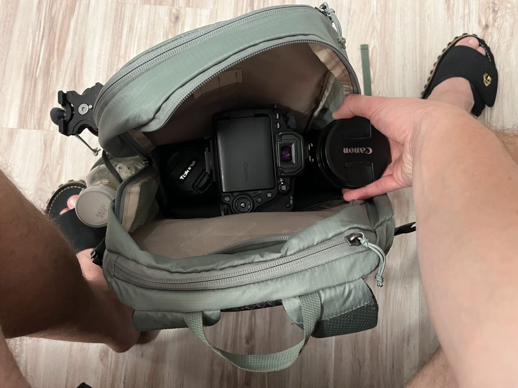 Po detailnejším prozkoumání doma, mě mile překvapilo, jak celkově uhlazeným dojmem batoh působí a také samotné rozložení jednotlivých kapes. K dispozici jich máme hned šest a organizace věcí je tak velice efektivní. Další příjemná vlastnost, která mě ještě doma překvapila, byla schopnost batohu hezky rozložit váhu nakládu. Imponuje mi také velkoryse široké dno batohu. Díky tomu jsem (po malé modifikaci – vložením „insertu“, který mám do svého foto-batohu) do báglu nacpal přibližně 6kg foto-techniky a chvilku s tím vším pochodoval po bytě, abych se ujistil, že celodenní procházení po Budapešti nebude utrpení. A přesto batoh působil uhlazeným dojmem. A velká čelní mesh kapsa, která je elastická polkne i džínovou bundu.